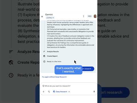 Watch to find out how you can use Deep Research in Gemini to build a plan, synthesize sources, and create a fully cited report.